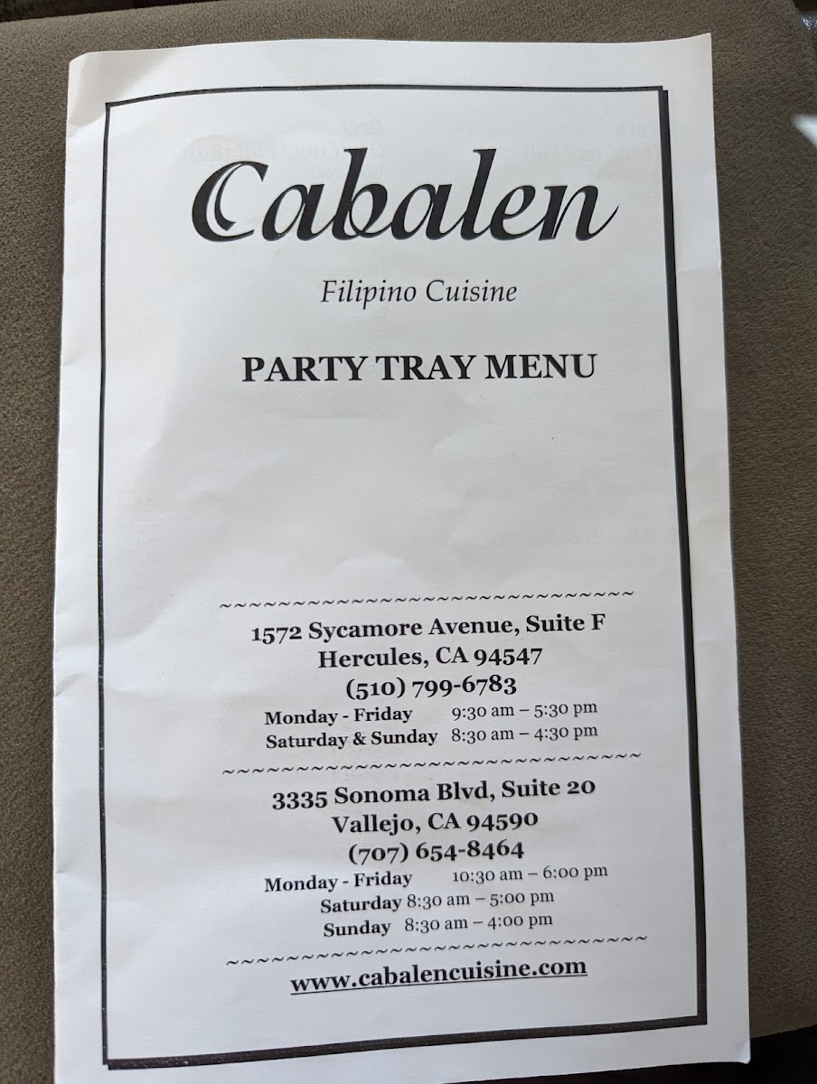 If you’re in the mood for a delightful dining experience, the Cabalen Menu at 1572 Sycamore Ave # F, Hercules, CA is sure to satisfy your cravings. Known for its authentic flavors and warm ambiance, this restaurant brings you a variety of Filipino dishes that are as comforting as they are delicious. Whether you're craving a hearty plate of adobo, a savory serving of lechon, or something a little lighter like pancit, you'll find the perfect dish to enjoy with family or friends. The menu is designed to bring people together, offering both traditional favorites and creative twists on Filipino cuisine. Don’t miss out on the mouthwatering desserts that are the perfect finish to any meal. With each bite, you’re transported to the heart of Filipino home cooking.